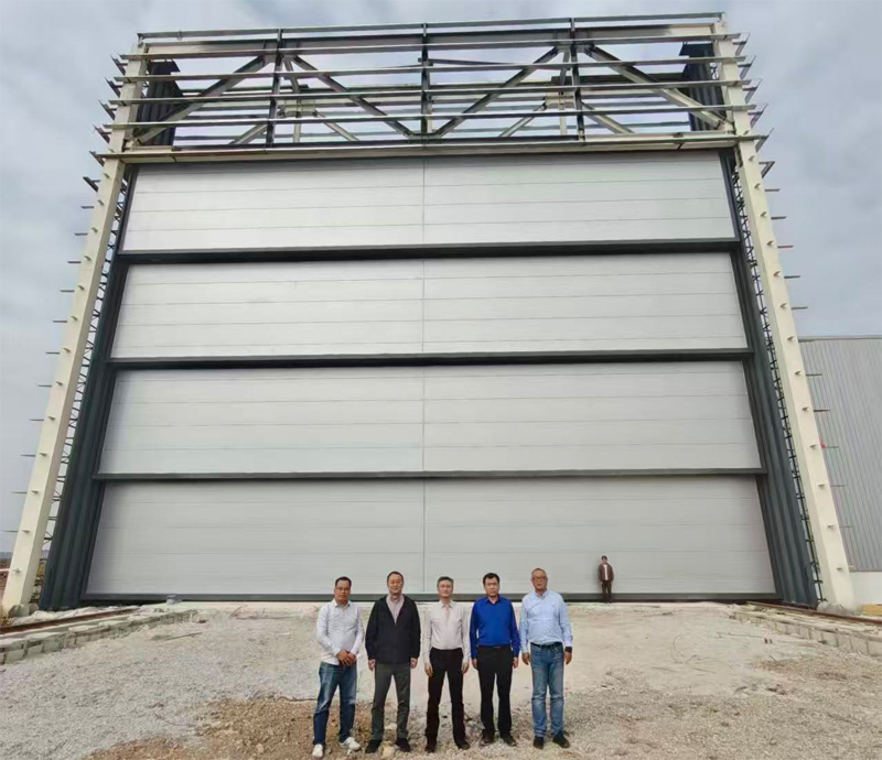 考察团还实地参观了由利颖门业承接的超大分段提升门(宽29.5米X高24米=708平方米)工程项目施工现场。该工程充分展示了利颖门业在大型工业门项目设计与施工方面的先进技术实力与丰富经验。超大分段提升门不仅在尺寸上突破传统,更在安全性、稳定性与智能化控制方面达到了行业领先水平。工程现场的精湛工艺与规范管理,为行业树立了新的标杆。考察团成员纷纷表示,将把利颖门业的成功经验带回各自企业,推动行业整体技术水平的提升。