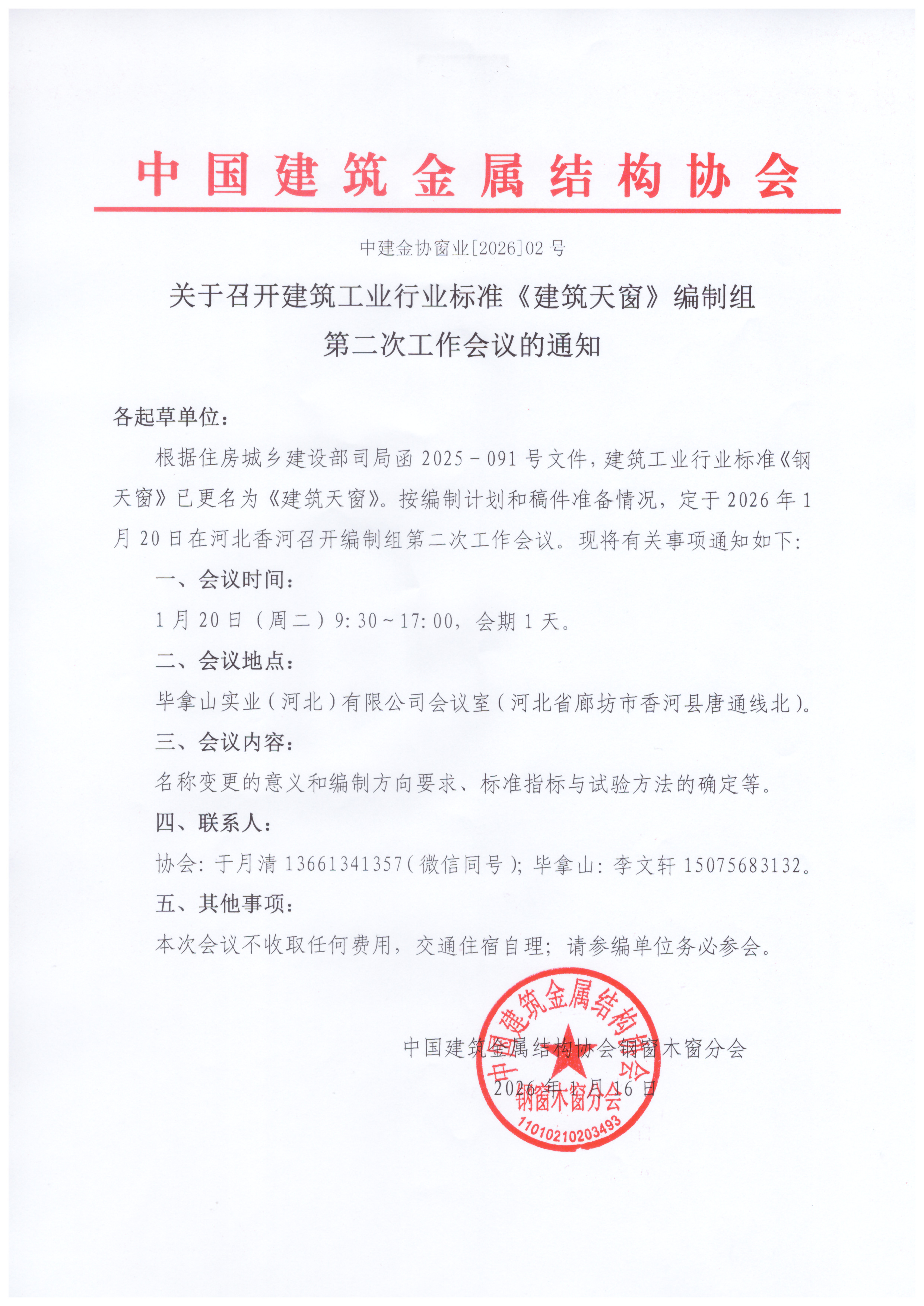 关于召开建筑工业行业标准《建筑天窗》编制组第二次工作会议的通知